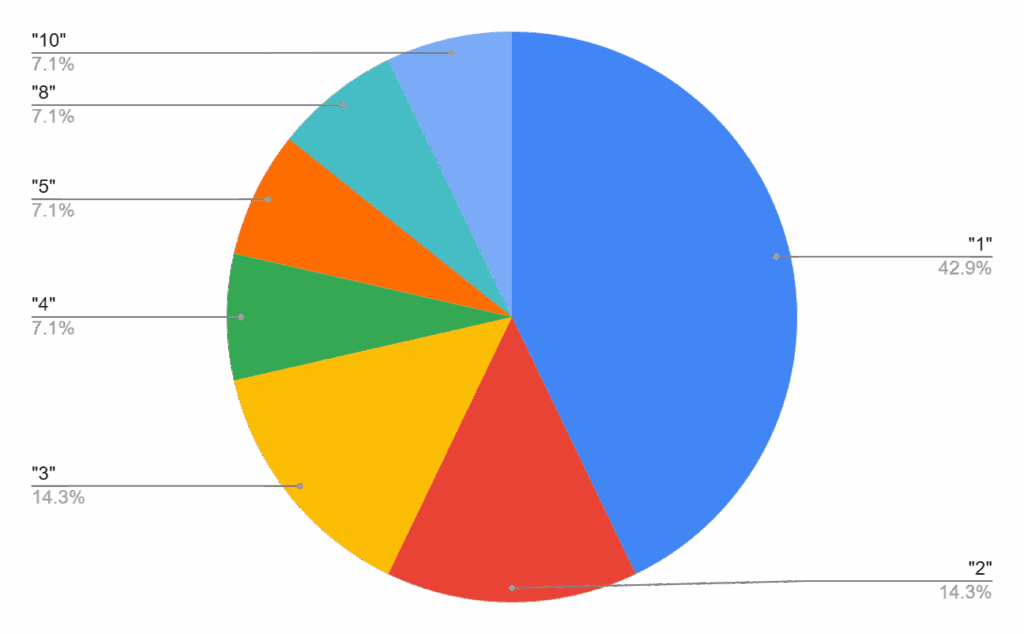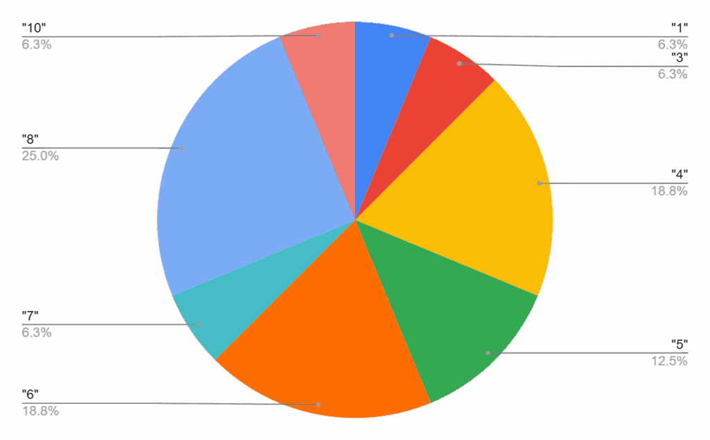 The first question asked the participants to rate how much they relate to the statement “I struggle with personal mental health problems in general (i.e. stress)” on a scale of 1-10. Not a single participant chose an option below 5.