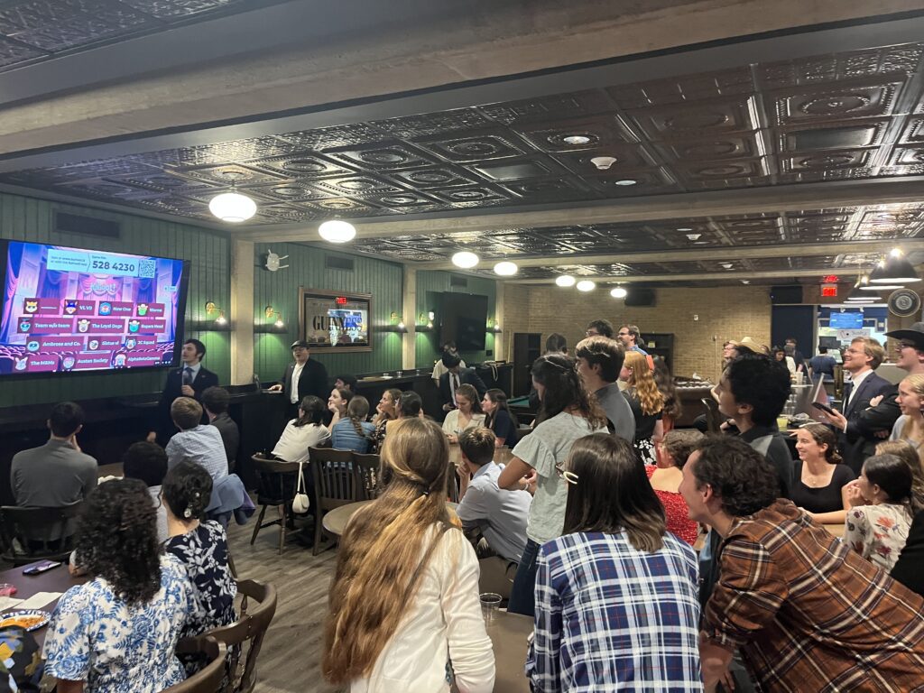 On November 13, as the night began to steep with shimmering stars, the Dumb Ox bubbled as students baltered and bantered at the social hour co-hosted by the Knights of Columbus council #14872 and the Blessed Is She leadership. Joy was felt by all with swing dancing on the patio, team trivia competitions, a pool tournament for cotillion tickets and insights from two guest speakers, Senior Jacob Nalagan and Dr. Irene Alexander, associate professor of theology.