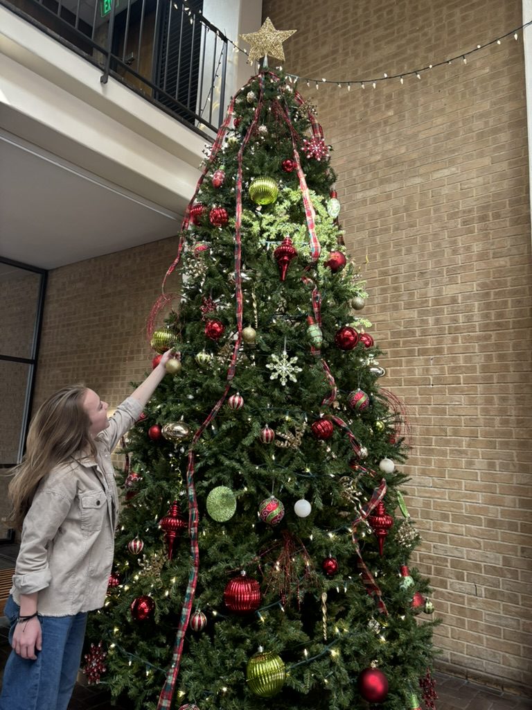 Professor O’Briant – Many of her traditions are linked to her family’s home in North Carolina. Her dad makes an annual batch of eggnog and delivers it around their small town to their friends and neighbors and he brings it with him while running errands in December to give to employees in gas stations or the bank. Christmas food always involves some sort of homegrown greens from her dad’s garden. O’Briant’s favorite Christmas movie is the original “Rudolph the Red-Nose Reindeer” from 1964.